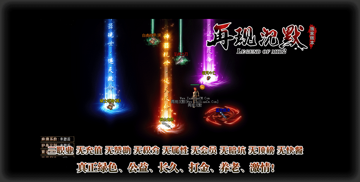 【版本介绍】:◆三职业,无充值,无赞助,无积分,无属性,无会员,无暗坑,无顶榜